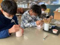 昼食を食べてから、砥部焼の絵付け体験をしました。焼き上がりが楽しみです。